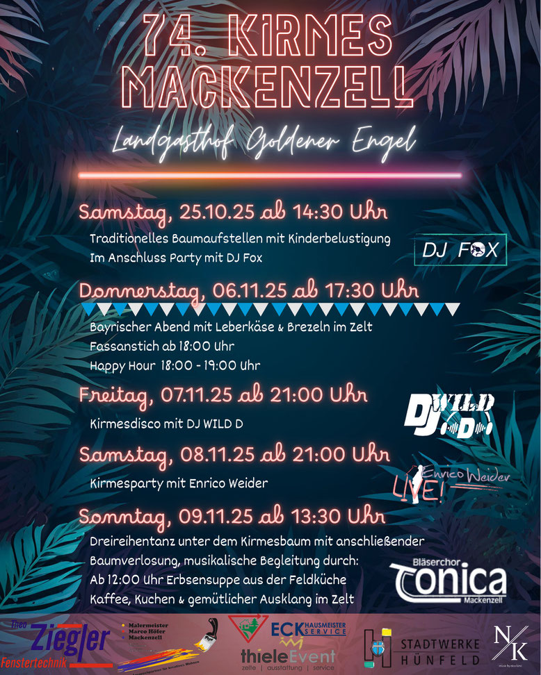 Kirmes News · 13. Oktober 2025 74. Kirmes Mackenzell Flyer: Marlen Schön, Kirmesgesellschaft Mackenzell tagPlaceholderTags: